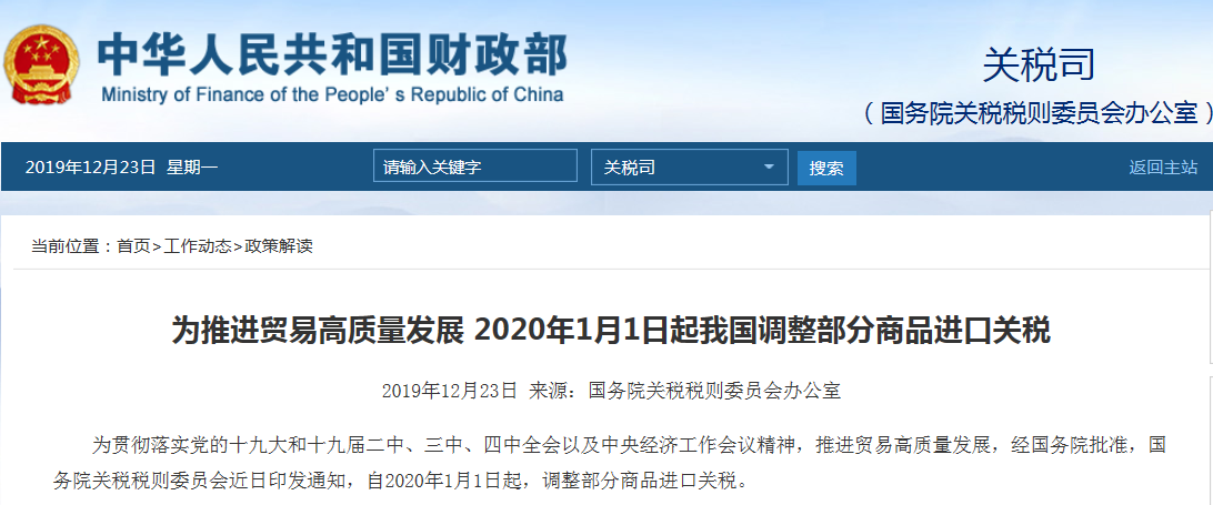 明年1月1日起我国调整部分商品进口关税