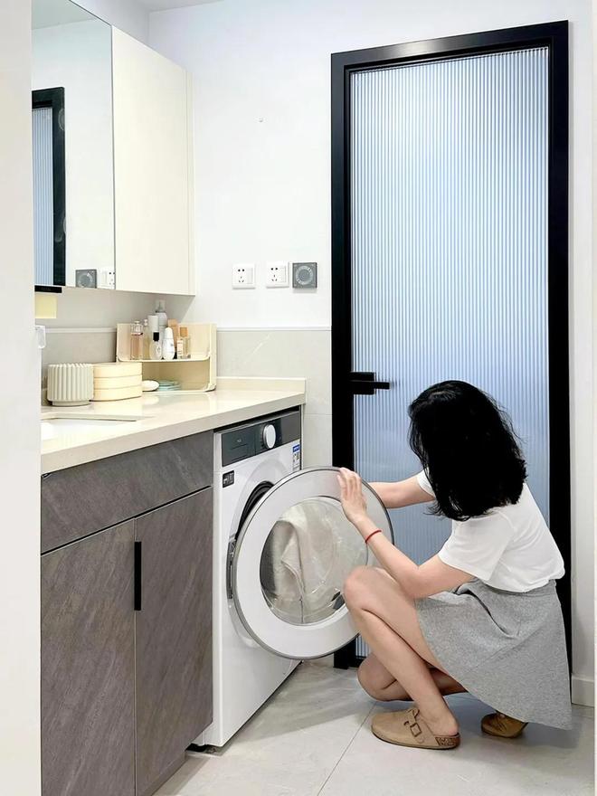 后期等柜子装好后,将洗衣机放上去,拿取衣服就方便多了。