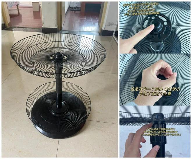 网友@我要去睡觉了:买一个晒鞋架要几十块,用旧风扇改造一个只需要10分钟,方法特别简单,一个网罩粘在底座上,一个网罩固定在杆子上。