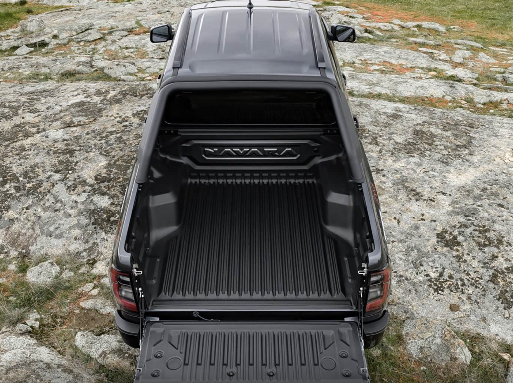 车身侧面线条笔直有力,轮眉外扩幅度加大,旗舰PRO-4X版本配备黑化轮眉与17英寸熏黑轮圈,搭配265/65 R17全地形轮胎,离地间隙提升至228毫米,越野气息拉满。车尾部分,采用竖向排列的LED尾灯,货厢尾部配备防刮擦护板,后保险杠集成拖车钩,配合3500kg的牵引能力,兼顾越野与实用属性。此外,新车在进气口、车标以及翼子板等处加入Lava red“熔岩红”装饰展现其身份。