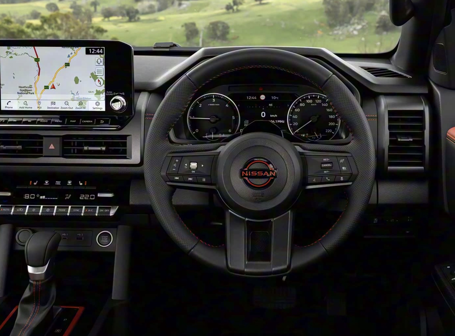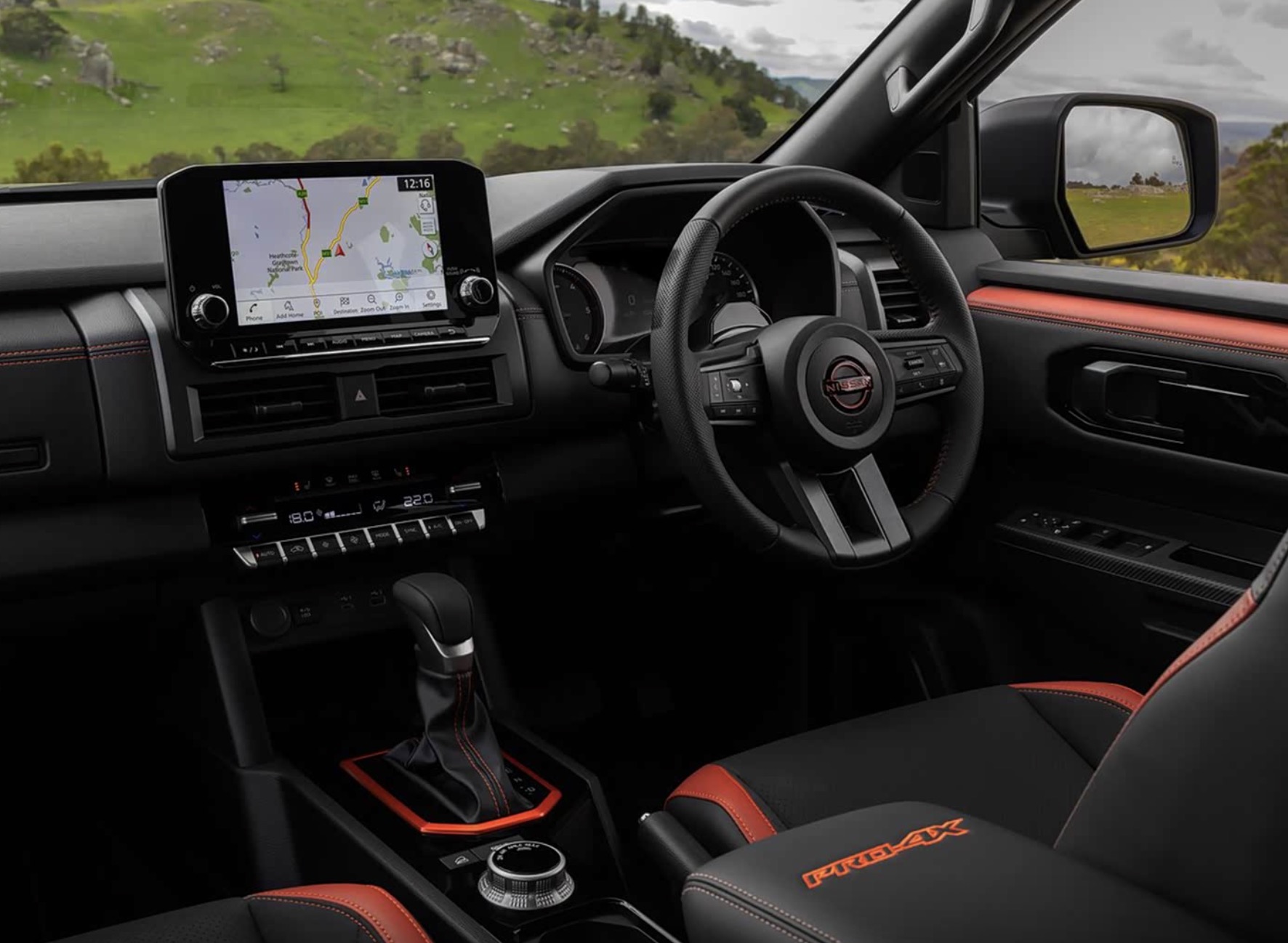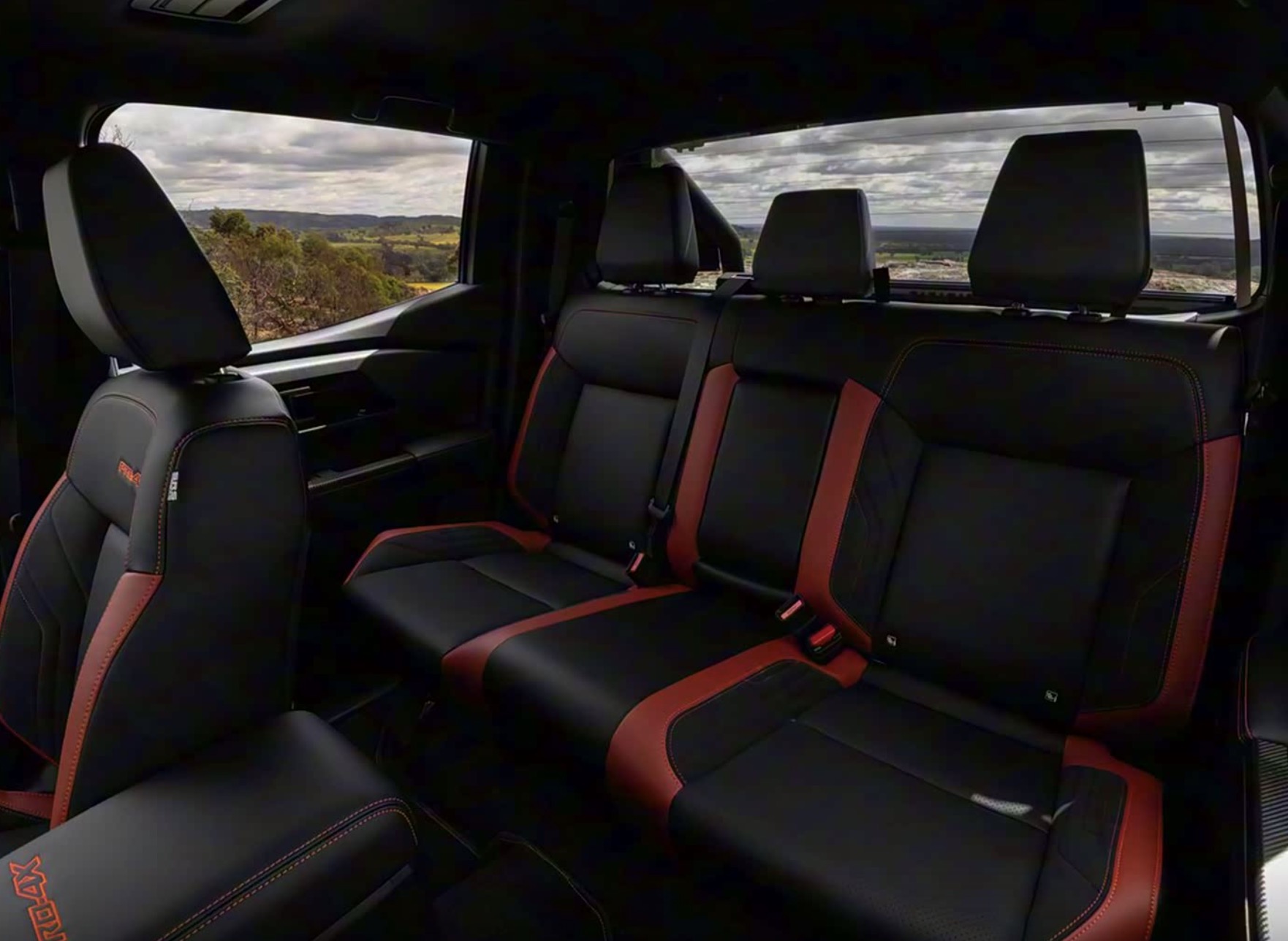 内饰以实用主义为核心,空间与便利性全面提升。7英寸彩显行车屏与9英寸中控屏组成基础交互系统,支持无线Apple CarPlay和Android Auto互联,高配车型还新增手机无线充电功能。座舱保留大量物理按键与旋钮,空调、四驱模式等核心功能可盲操作,适配复杂路况下的使用需求。座椅采用耐磨织物或皮质材质,PRO-4X版本以“熔岩红”缝线点缀,强化运动氛围。