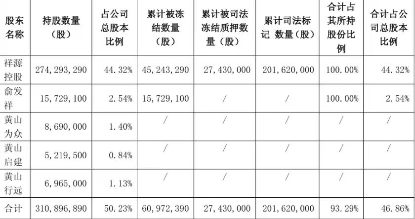 在债务风波和工作组进驻的同时,祥源系核心股权已被大量冻结。12月16日,交建股份率先披露,控股股东祥源控股及实控人俞发祥所持公司股份已被司法冻结、轮候冻结及司法标记。