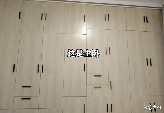 不止工艺有问题,这设计的审美更是一言难尽(其实压根也没什么设计),就拿主卧的衣柜来说,各种收纳格和挂衣区乱七八糟堆在一起,完全没有任何章法,更别说考虑板材的美观和实用性了,一塌糊涂。