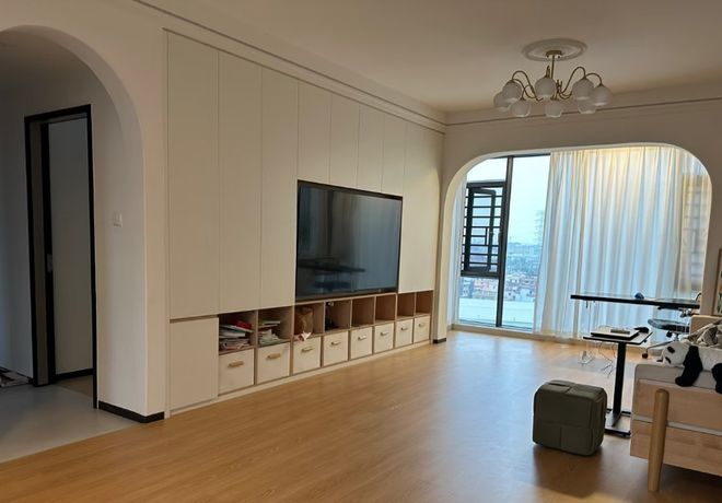 装修建议:薄柜颜色尽量与墙面一致,可以减少存在感,而内部可以安装小型感应灯,开柜即亮。