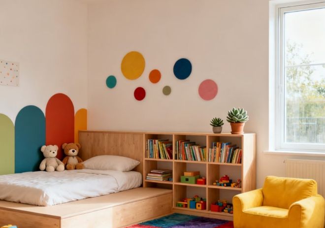 而动态立面造型充满趣味,是房间的视觉焦点。模块化设计,还能随孩子成长需求变化调整布局。