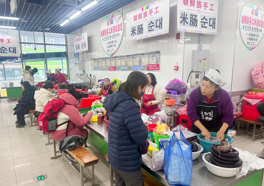 但在延吉本地人心里,西市场远不止是“伴手礼采购地”。穿过喧嚣的摊位,拐进一楼堂食区,一碗热气蒸腾的米肠、一碟嫩滑清鲜的水豆腐、一盆刚拌好的辣白菜……这些味道,早已融入几代人的记忆。逛累了坐下吃一顿简单的餐食,临走时捎上几份当日现做的泡菜,这样平淡温暖的画面,深深烙印在延吉人的日常生活里。