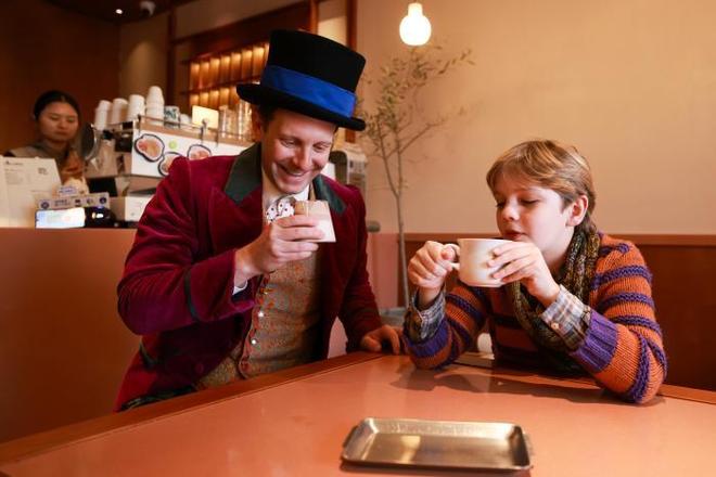 在UMA午马咖啡与德南面包房,演员们品尝剧中“巧克力瀑布”为灵感制作的咖啡与甜品。