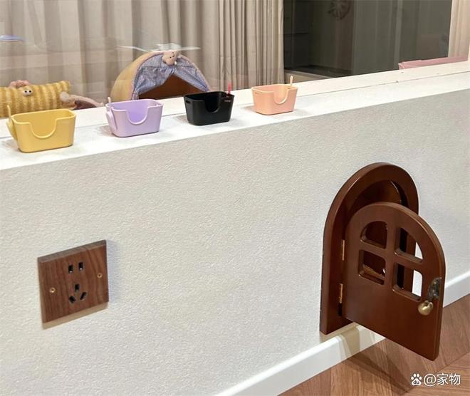 或许是从“猫和老鼠”里汲取的灵感,这位湖南姑娘特意在猫房隔断矮墙上掏出了一个拱形门,白天的时候就这么开着,就像是个微缩的过家家场景,看起来多了几分可爱和复古的感觉。
