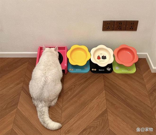 三只猫咪,一共四个饭盆,一个是日常放猫粮的碗,每天早晚添加就行,目前来看三小只相处还是非常和谐的~