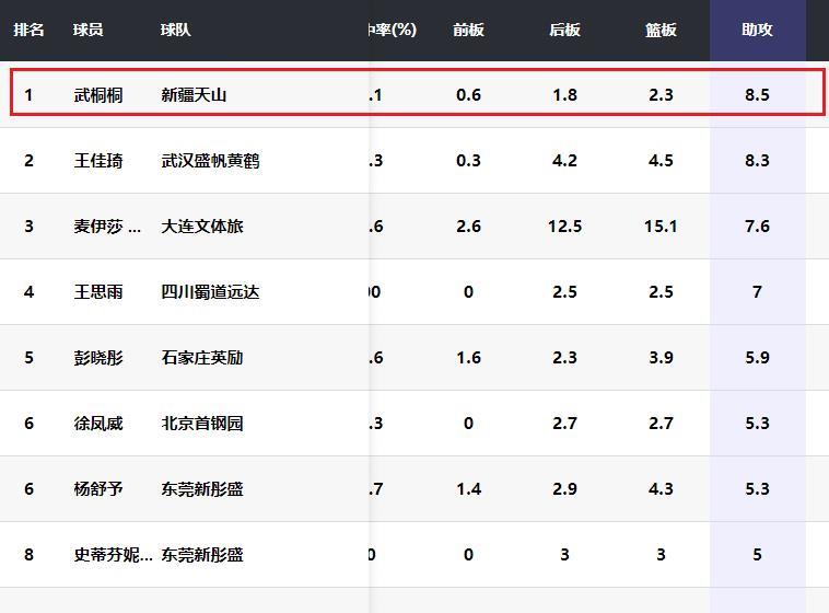 武桐桐目前是联赛的助攻王,此外她的场均得分排名联赛第19名,在本土球员中排名第二,仅次于场均得到17.3分的杨舒予。也就是说,在本赛季WCBA联赛的本土球员中,武桐桐得分第二,助攻第一,这都不能够入选国家队吗?