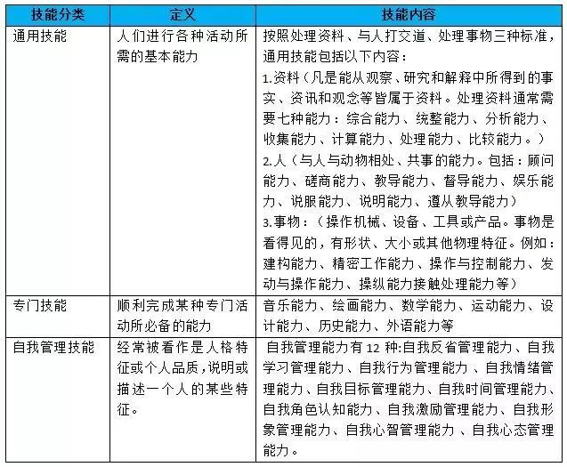 技能是后天可以改变的。技能分为三种,分别是通用技能(可迁移技能)、专业技能和自我管理技能。
