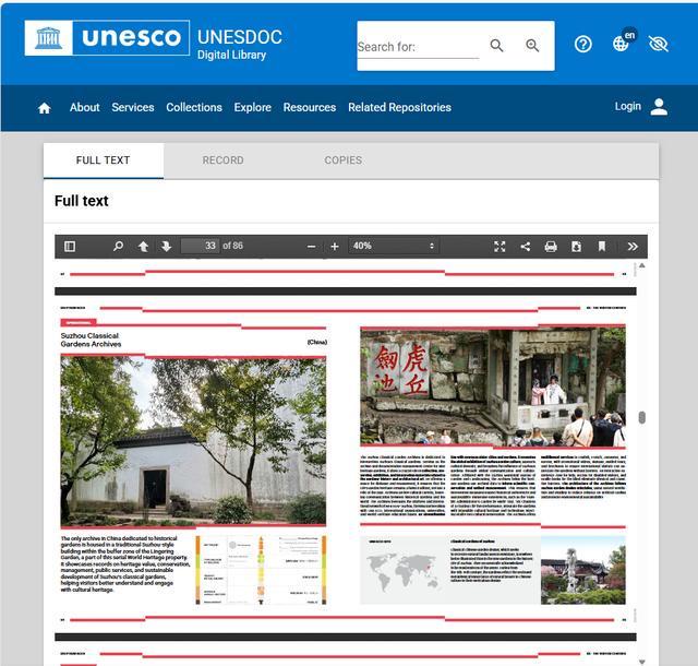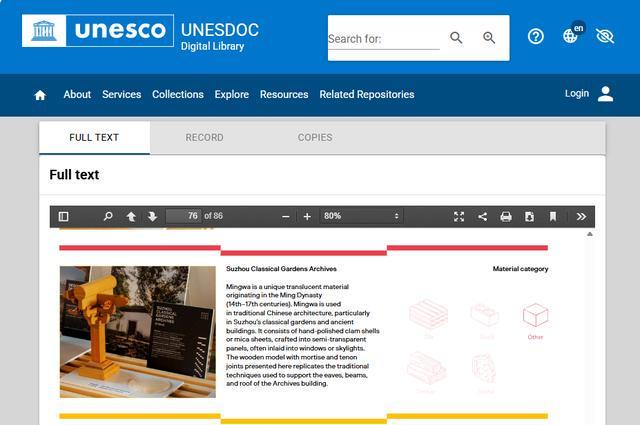 现代快报记者了解到,联合国教科文组织数字图书馆为其文件与相关出版物的专题数据库,此次苏州园林保护利用案例的成功上线,不仅承载了苏州园林的历史记忆,更以开放共享的姿态,向全球提供了文化遗产保护的“中国经验”,为全球文明交流互鉴贡献“中国智慧”。