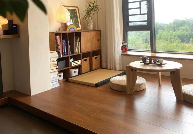 在地台上面可以放懒人沙发、小茶几、瑜伽垫,形成一个非常不错的休闲区。