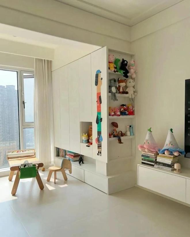 可以利用侧柜的位置,放上小孩子爱看的书籍,也因为有了它的存在,一下子成了客厅的点睛之笔。