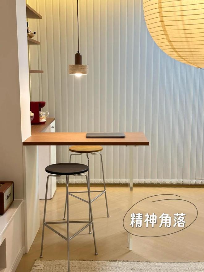 有些年轻人不太喜欢在客厅里做书桌,但会喜欢在客厅做吧台的设计。