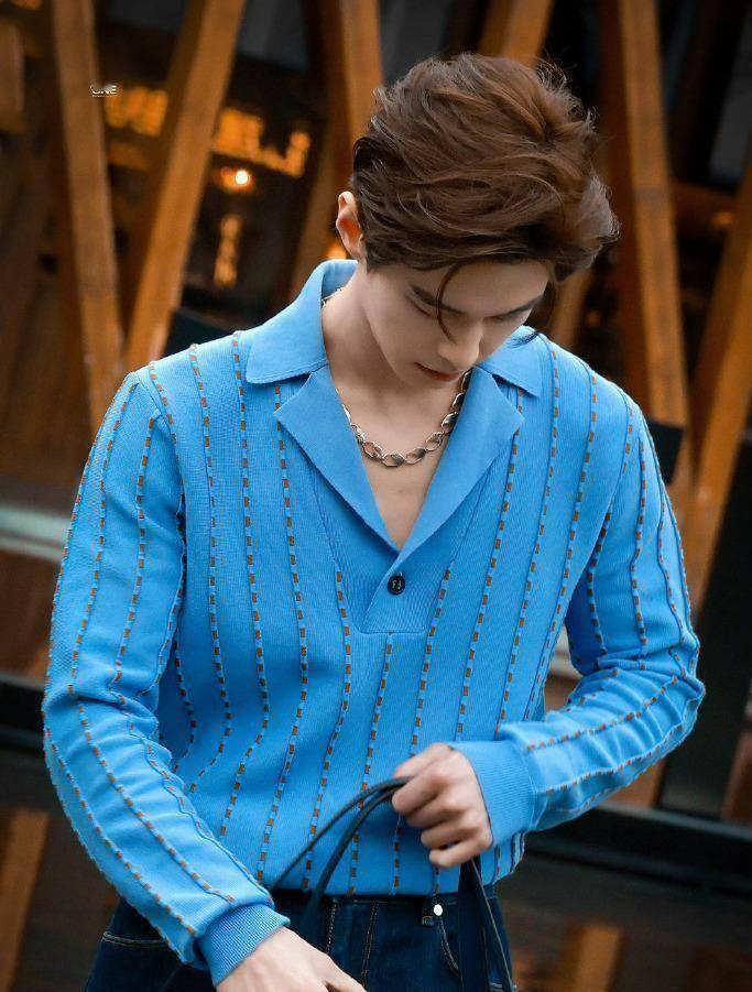 要说当晚最惊喜的,还得是新生代艺人何与。 他没穿那种花里胡哨的高定撑场面,选了FENDI 2023冬季胶囊系列的浅蓝V领条纹针织衫,搭深色直筒牛仔裤,拎着品牌的Lui手袋,就加了一条银古巴链点缀。