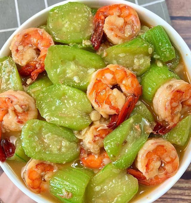 丝瓜1根、鲜虾15只、鸡蛋3个、蒜瓣3粒、姜丝1勺、蚝油1勺、盐1勺